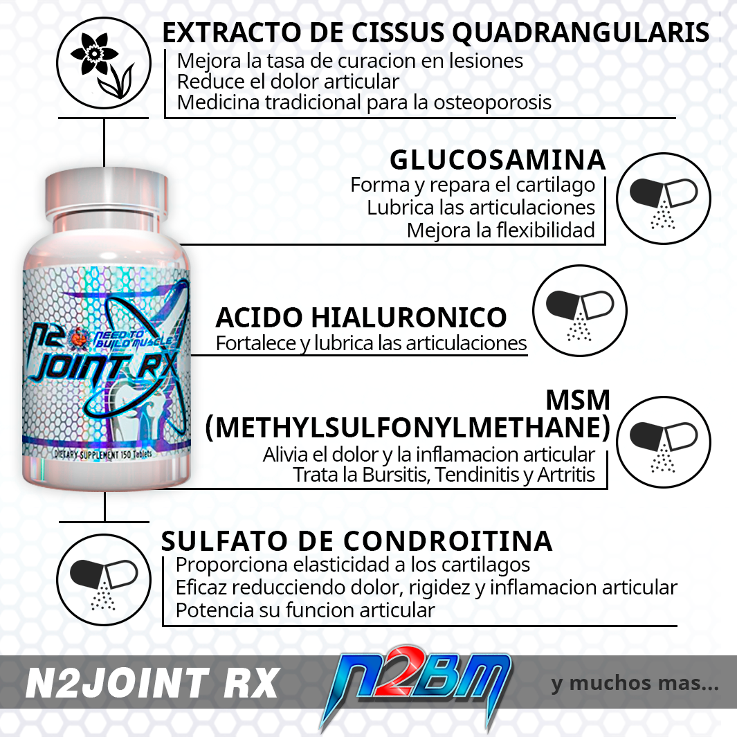 Por esto y mucho mas… N2BM Nutrition pensó en diseñar la maravillosa formula de N2Joint RX, un suplemento natural que le proporciona los componentes para reparar, prevenir y fortalecer sus articulaciones, ligamentos y tendones.